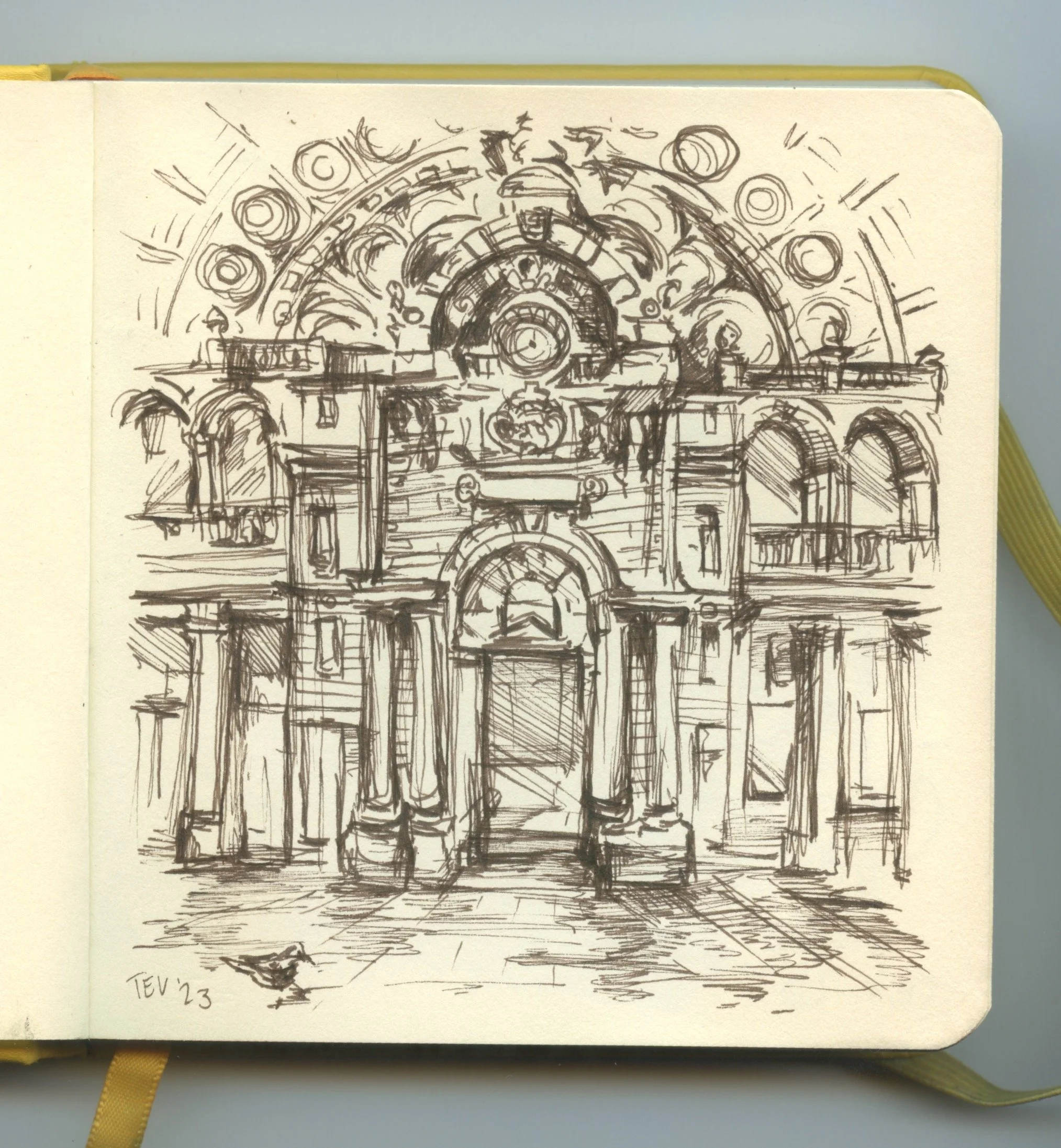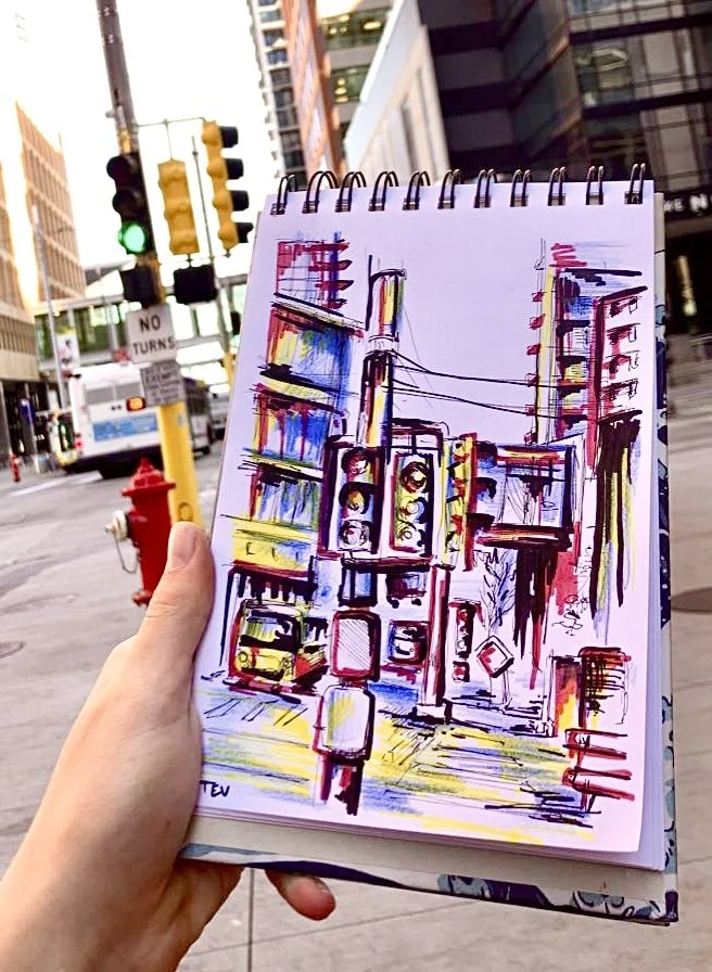 Whether I am travelling near or far, I like to have a sketchbook close at hand. It is core to my practice, and I enjoy translating what I see on site to a two-dimensional surface. My sketchbooks are formative to my process, and hold some of my favorite works. Page through some of my pages and spreads below!